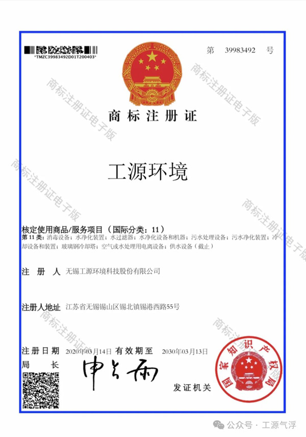 工源环境始终视品牌信誉为第一生命,公司成立伊始便注册“工源”商标并以优质的产品与服务,致力打造“工源”品牌。历经十余载,从十年前获颁“无锡市知名商标”证书开始,工源环境便立志要将“工源”打造成细分领域国际首选品牌之一。